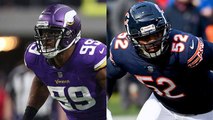 Chicago Bears linebacker Khalil Mack sacks Arizona Cardinals quarterback Sam Bradford for a loss of 7 yards.