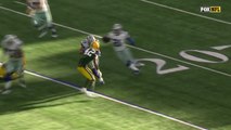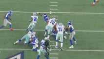 Dallas Cowboys running back Ezekiel Elliott leaps over Lions defense and rushes 41 yards down the field.