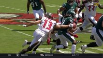Miami Dolphins saftey Minkah Fitzpatrick intercepts first pass of NFL career thrown by New England Patriots quarterback Tom Brady.