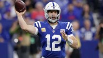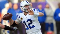 Indianapolis Colts quarterback Andrew Luck places a perfect throw to T.Y. Hilton for a 42-yard completion.