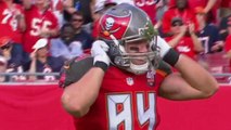 Tampa Bay Buccaneers quarterback Jameis Winston avoids a sack and races away from the defense for a 7-yard gain.
