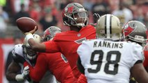 San Francisco 49ers quarterback C.J. Beathard finds wide receiver Pierre Garcon near the sideline for a 23-yard pass completion.