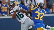 Seattle Seahawks quarterback Russell Wilson goes deep to wide receiver Tyler Lockett for a 39-yard touchdown completion.
