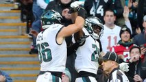 Philadelphia Eagles quarterback Carson Wentz lofts 12-yard touchdown pass to running back Wendell Smallwood.
