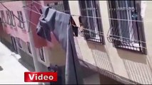Elektrik teline düşen halı alev aldı