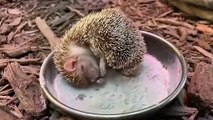 Hedgehog little cute after wake up