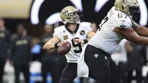 New Orleans Saints quarterback Drew Brees floats a pass over a Baltimore Ravens' defender to his wide receiver Michael Thomas for 32 yards.