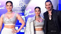 Bollywood Actress Sunny Leone Gives A Surprise Birthday Party To Her Hubby Daniel Weber. Sunny Looks sexy in black outfit.