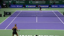 Défaite par Kiki Bertens lundi, Angelique Kerber s'est relancée en battant Naomi Osaka pour le deuxième match du round robin de l'édition 2018 du Masters, ce mercredi à Singapour. L'Allemande, n°2 mondiale, est venue à bout de la Japonaise, n°4, en 2h31 (6-4, 5-7, 6-4 en 2h31'). Revivez en vidéo les temps forts de cette rencontre.