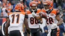 Cincinnati Bengals running back Joe Mixon rushes through blocks for an 8-yard touchdown, his second one of the day.