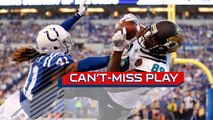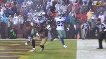Baltimore Ravens safety Eric Weddle tips a pass from Carolina Panthers quarterback Cam Newton, but running back Christian McCaffrey is there for a touchdown.