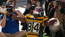 Pittsburgh Steelers quarterback Ben Roethlisberger throws a short side pass to Pittsburgh Steelers wide receiver Antonio Brown for a 1-yard touchdown against the Cleveland Browns.