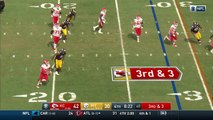 Kansas City Chiefs quarterback Patrick Mahomes throws a 13-yard touchdown pass to wide receiver Sammy Watkins.