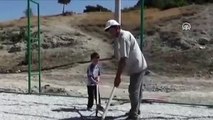 Köylüler "imece" ile halı saha inşa ediyor