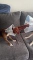 Dogs Play Tug-of-War While Wearing Recovery Cones