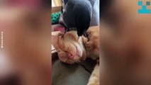 Hunter the bulldog is one sound sleeper.