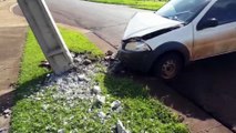 Carro atinge poste na Avenida Brasil, no Centro de Cascavel