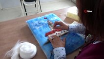Keçi ve koyun yünlerini nesnelere resmederek sanata dönüştürüyor