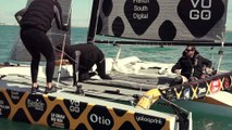 C'est une vidéo impressionnante que nous envoie Kito de Pavant à bord de son Class40 Made In Midi. Il navigue actuellement sous 45 noeuds. Il décrit une situation peu confortable.