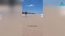 Incredible footage from the legendary surfing beach at Nazaré, Portugal shows Australian big wave surfer, Russell Bierke, charging one of the biggest waves that day before wiping out.