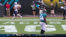 New England Patriots quarterback Tom Brady delivers a strong pass over the middle to wide receiver Josh Gordon for 23 yards.