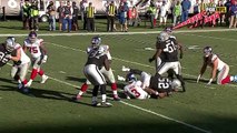 Chicago Bears linebacker Khalil Mack bowls over the Detroit Lions offensive line to sack quarterback Matthew Stafford.