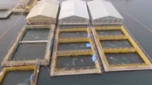 Le complexe est surveillé par des hommes armés tandis que les animaux vivent dans de minuscules cages sous-marines constituées de filets.