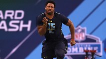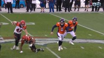 Cleveland Browns defensive lineman Myles Garrett blocks Cincinnati Bengals kicker Randy Bullock's 54-yard field goal attempt.