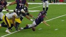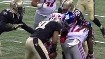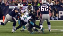 Indianapolis Colts tight end Eric Ebron goes up in the air following a catch and is hit by Jacksonville Jaguars linebacker Telvin Smith, who forces the fumble, and linebacker Myles Jack recovers it.
