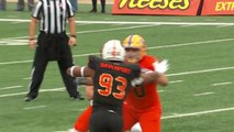 Arizona Cardinals defensive end Chandler Jones sacks Green Bay Packers quarterback Aaron Rodgers for a loss of 6 yards.