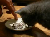 raymond dévore sa gamelle en faisant des petits bruits