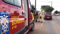 Forte colisão frontal entre carro e moto é registrada na Rua Riachuelo com Rua Paraná