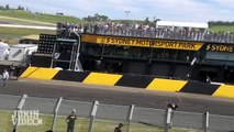 This biker jumped over a dip in the biking trail and wanted to land on the downhill but instead ended up flipping over his handlebars and falling to the ground.