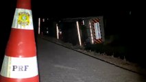 Caminhão frigorífico carregado tomba na BR-369, em Apucarana