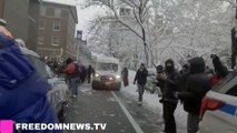 Policía y jóvenes enfrentados en una pelea de bolas de nieve