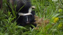 A cute baby skunk is released back into the wild