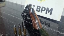 Arma apreendida em ocorrência no Riviera é levada para a delegacia