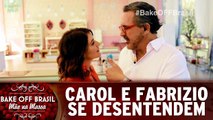 Carol e Fabrizio se desentendem nos bastidores do Bake Off Brasil