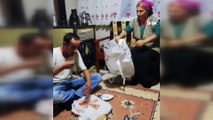 Evdeki yırtık poşetleri iplikle dikti