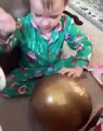Le matin de Noël, un enfant découvre ses cadeaux et déballe un oeuf surprise géant. L'enfant ne va demander de l'aide à personne pour l'ouvrir car il utilise une technique très efficace. Il pose l'oeuf en plastique et saute dessus avec ses fesses. On a l'impression qu'il a fait cela toute sa vie :)