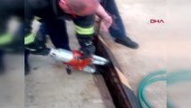 Derede mahsur kalan kedi kurtarıldı