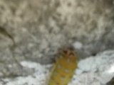 Grosse chenille verte à points jaunes du papillon Petit-paon-de-nuit (saturnia pavonia).Ici à Pen-Hir (Camaret sur Mer) en Bretagne