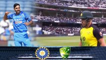 टॉस जीतकर पहले बल्लेबाजी करने उतरी ऑस्ट्रेलियाई टीम ने भारत के सामने बड़ा स्कोर खड़ा कर दिया है, शॉन मार्श ने शानदार 131 रन की पारी खेली, मैक्सवैल ने भी 48 रन की पारी खेली, फिंच एक बार फिर भुवनेश्वर कुमार की गेंद को समझने में भूल कर बैठे और बोल्ड हो गए। फिंच के बाद अगले ही ओवर में एलेक्स कैरी भी मोहम्मद शमी की गेंद पर कैच आउट हो गए। कैरी को 18 के स्कोर पर शमी ने धवन के हाथों कैच आउट कराया। इस साझेदारी को रविंद्र जडेजा ने तोड़ने का काम किया। कुलदीप यादव के ओवर में जडेजा ने शानदार अंदाज में रन आउट कर भारत को बड़ी सफलता दिलाने का काम किया था