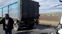 Buzlanan yolda kamyon park halindeki tıra çarptı