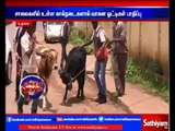 In Mandya district, Karnataka state for the Hindu festival of Makar Sankranti on January 14, men decorated cows with garlands and bells and walked them over burning piles of hay.