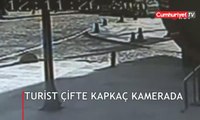 ( İSTANBUL - ÖZEL)- Şişli’de turistlerin içinde 20 bin lira olan çantasının çalınma anı kamerada İSTANBUL