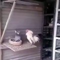 Un duel acharné entre un pigeon et un coq !
