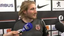 Alban Placines, troisième ligne du Stade Toulousain, savourait le succès net face à Grenoble (29-16) dimanche après-midi. Une victoire bonifiée qui permet aux Toulousains de prendre la tête du classement avant une coupure bien méritée.