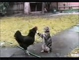 Fight between cat and hen