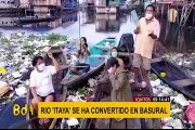 Hacen uso de este electrodoméstico malogrado para poder trasladar a sus hijos hasta sus viviendas, ante desborde del caudal.